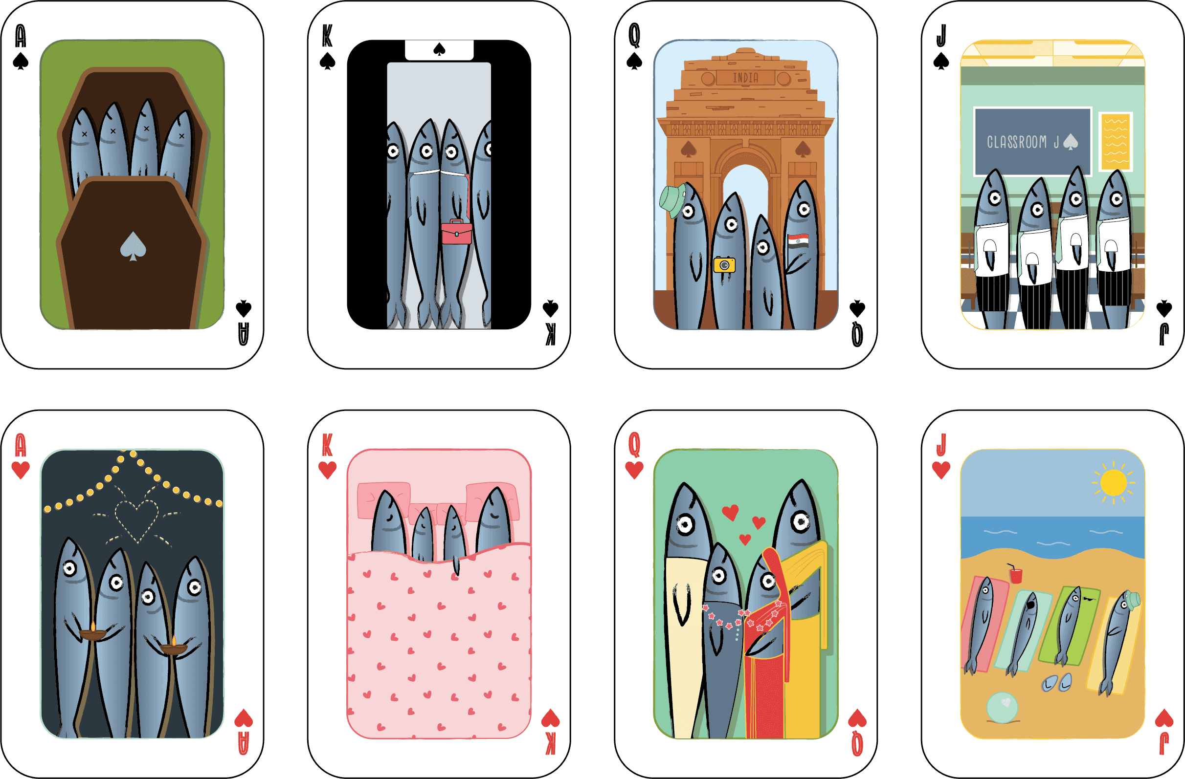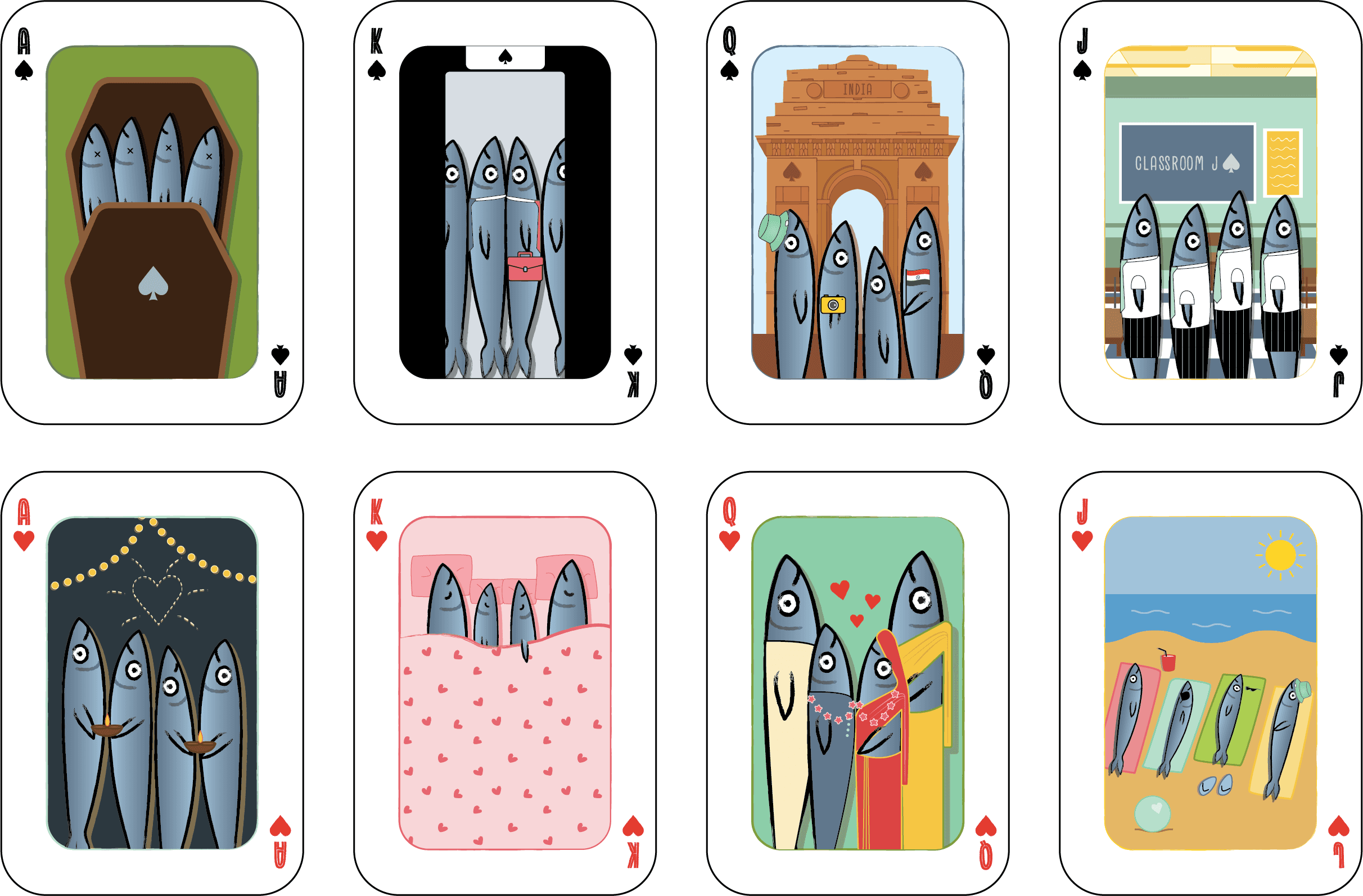 Snug as Sardines is a playing card deck inspired by tin can art and the organised chaos of Indian life.